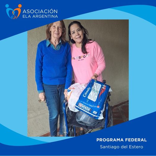 Filial Santiago del Estero: Colaborando con Pedro 12/04/2024 Majo referente federal de la Asociación hace nexo entre Nicolás y Lili - esposa de Pedro- en la entrega de una silla de ruedas y pañales para aliviar su transitar por la ELA.