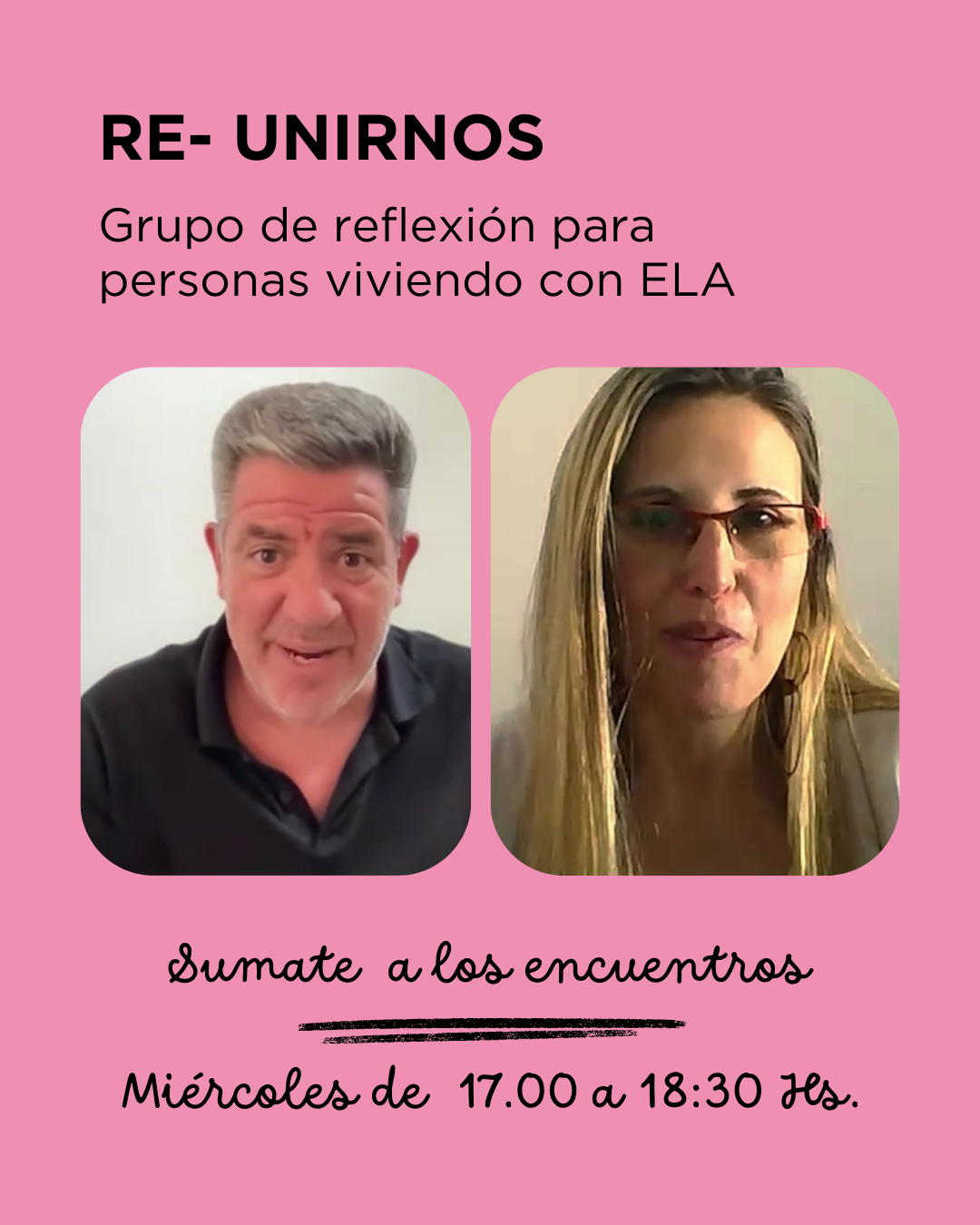 Re-Unirnos 09/02/2026 Grupo de reflexión para personas que viven con ELA - Un espacio para encontrarnos, compartir experiencias y poner en palabras lo que sentimos. Miércoles De 17:00 a 18:30 hs I Inicia el 11/02/2026 - Sumate!