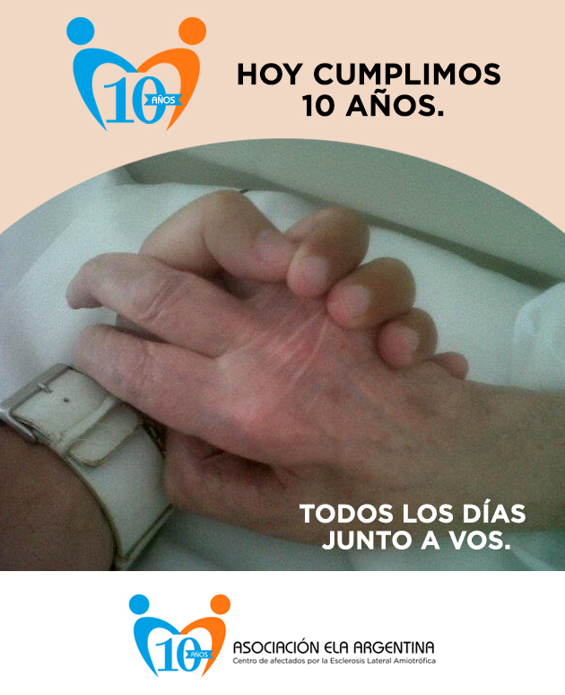 Hoy cumplimos 10 años 23/11/2021 Te invitamos a dejarnos unas palabras que sigan motivándonos a trabajar día a día por el bienestar de la comunidad afectada por la ELA en nuestro país. Muchas gracias.