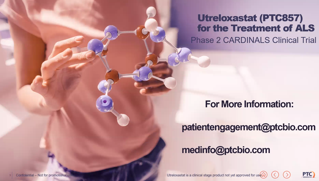 - Sobre la base de estos resultados, PTC Therapeutics, promotora de la terapia, ha puesto en marcha un ensayo de fase 2 (NCT05349721) para evaluarla en hasta 258 adultos con ELA de entre 18 y 80 años. El reclutamiento está en marcha en 80 centros de distintas partes del mundo, entre ellos Argentina y Brasil.