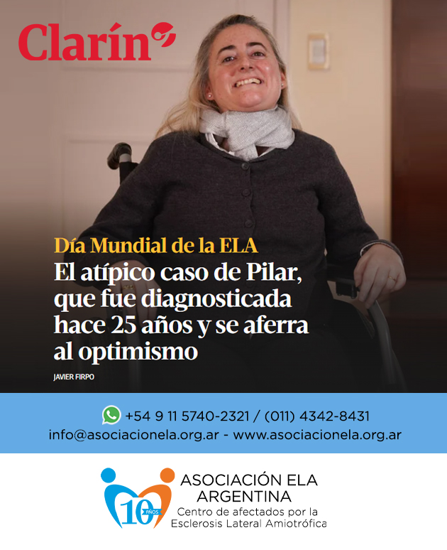 Día mundial de la ELA 21/06/2022 El atípico caso de Pilar. Fue diagnosticada hace 25 años y se aferra al optimismo. Es integrante de nuestra comisión directiva y miembro fundador de la Asociación ELA Argentina. Leer la nota en https://bit.ly/3A9kgIr