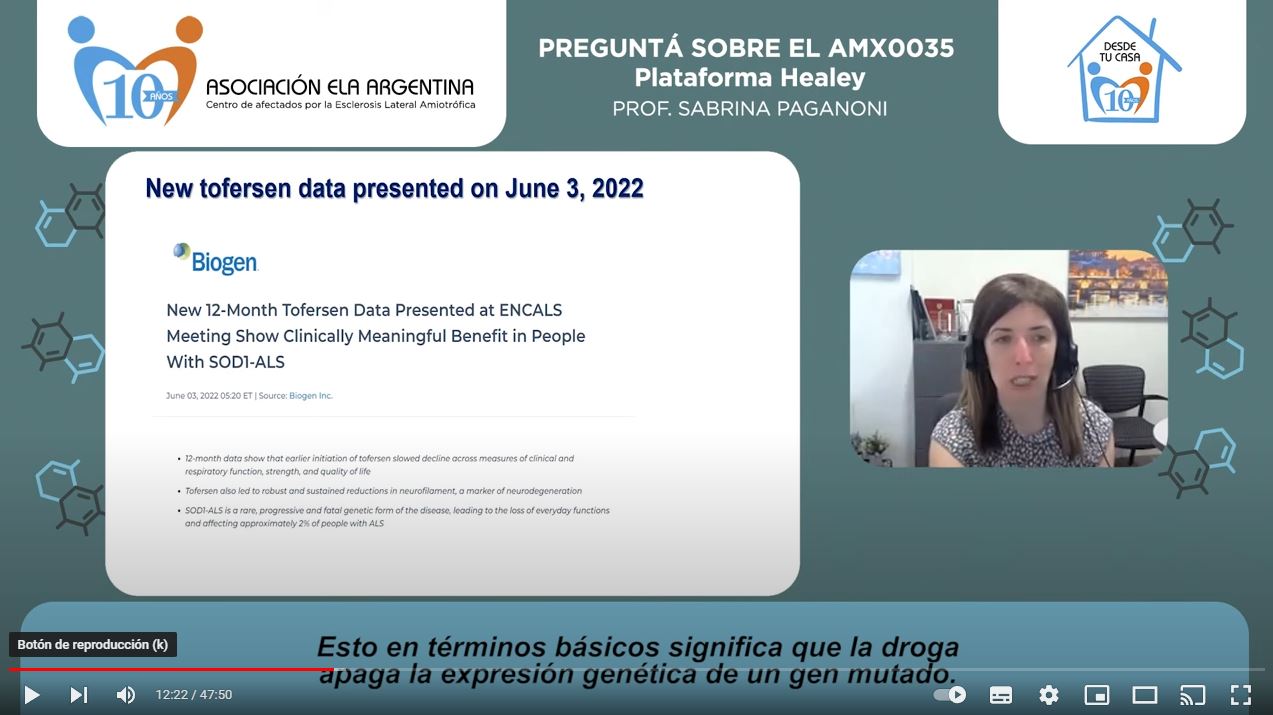 AMX0035 - Aminorar la progresión de la ELA 18/07/2022 Encuentro con una de sus principales investigadoras, la Prof. Sabrina Paganoni. Actualización de resultados y todas las respuestas a las inquietudes de pacientes y familiares de la Argentina. Te lo compartimos.